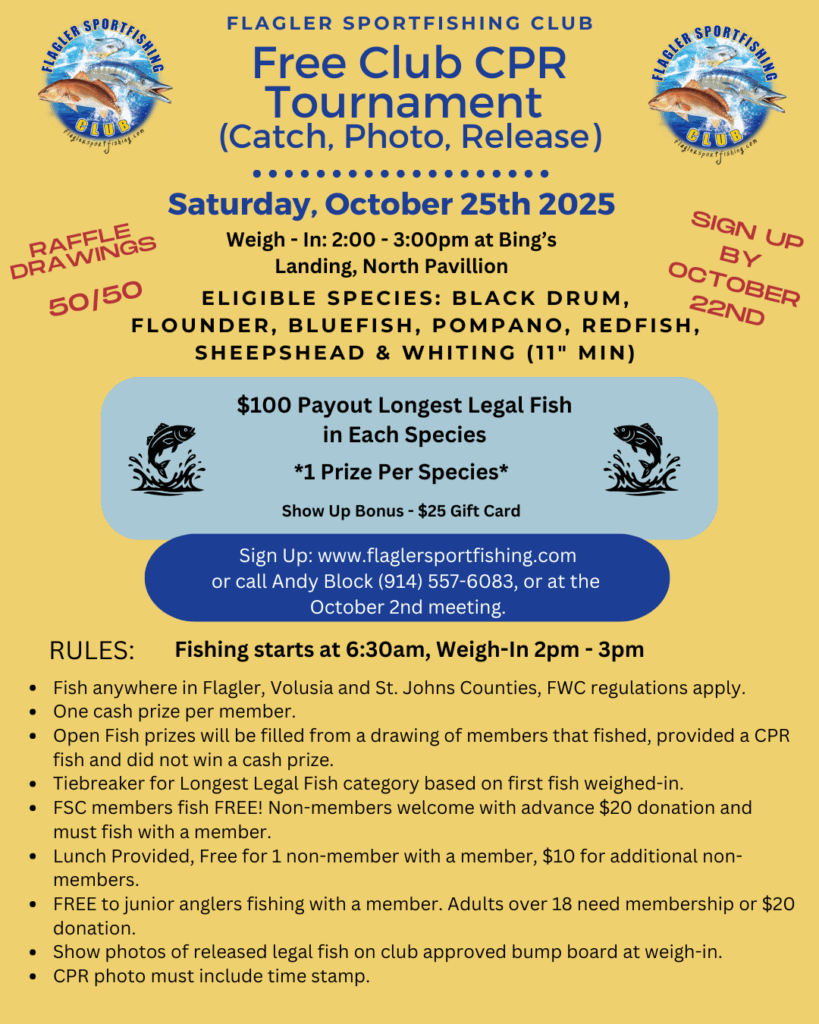Non-Members/Guests are welcome with a donation of $20.00 each and must fish with a member.. Click on the link to pay for guest. https://flaglersportfishing.com/product/tournament-guest/