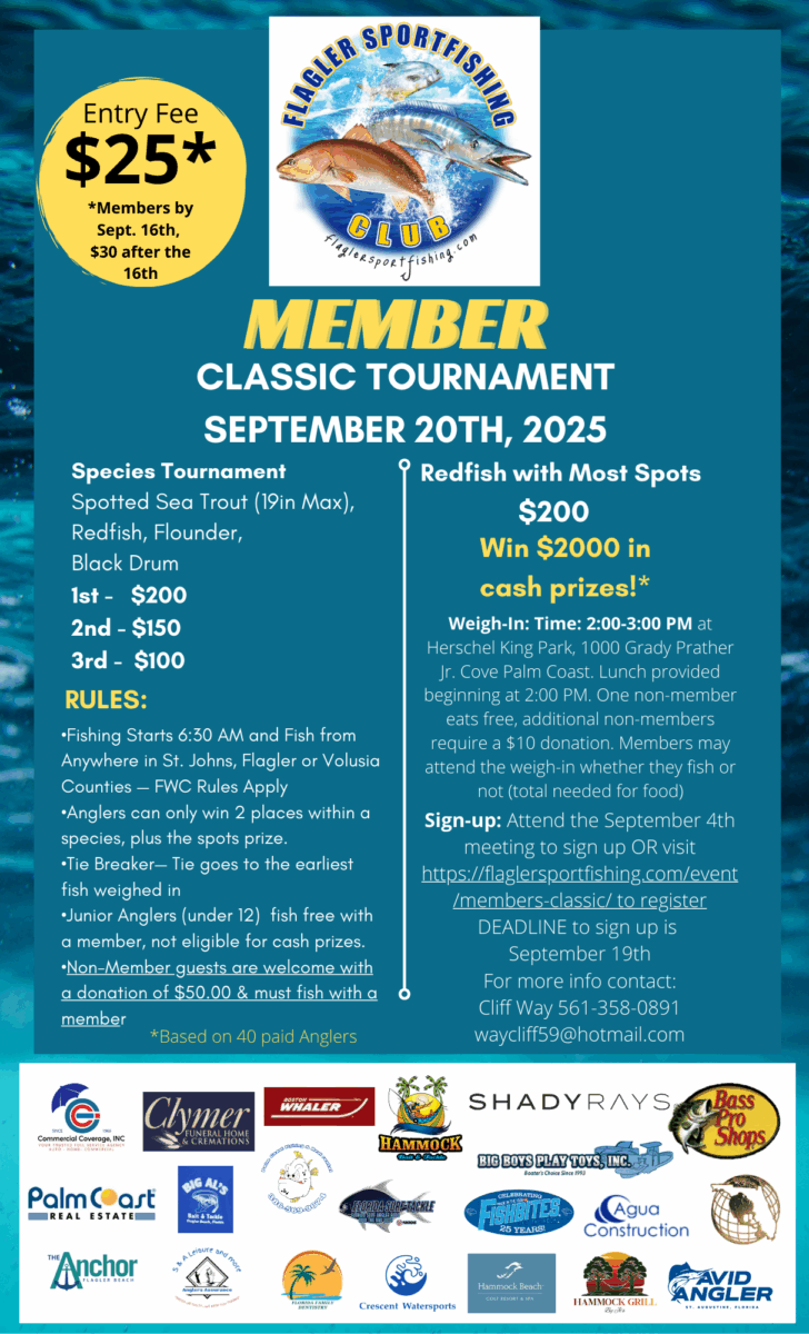 Club Members can attend Free. Guest can attend for a small fee of $10, https://flaglersportfishing.com/product/guest-fee/